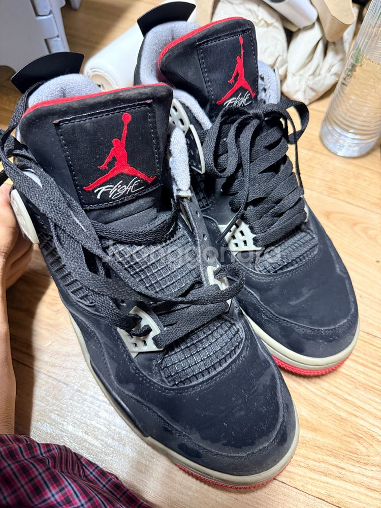 개인정보(거래정보)를 주고받는 행위는 사기에 노출될 수 있으므로 즉시 중고나라로 신고해 주세요나이키 에어조던4 레트로 블랙 컬러웨이 운동화예요. 전체적으로 깔끔한 상태이고 밑창도 양호합니다. 클래식한 디자인으로 오래 신을 수 있는 명품 운동화입니다. 2019 버젼으로 현재 리셀가 40만원 중반대 입니다