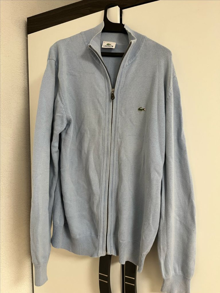 라코스테 남성 집업 가디건 정품 - 색상은 산뜻한 하늘색입니다 - 사이즈는 3입니다 - 구매한지 오래되어 모서리부분(소매끝, 목부분, 지퍼올리는부분) 변색 있어 편하게 입으실분 추천 - 보풀, 올나감 없습니다