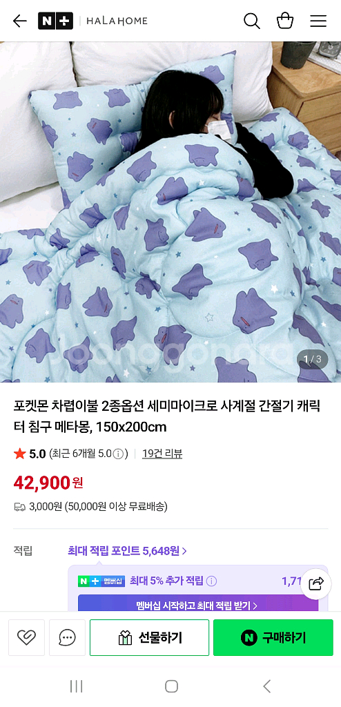 귀여운 포켓몬 메타몽 캐릭터 차렵이불입니다. 150x200 사이즈로, 사계절 내내 덮기 좋은 이불이에요 받기만 하고 새상품 사용없이 그대로 바로 판매합니다 자세한내용은 사이트 참고하시면 됩니다! https://m.smartstore.naver.com/halahome/products/11457541904 택배비 포함 38000에 팝니다 연락주세요!