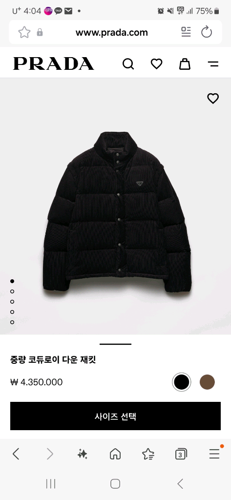 프라다 정품 코듀로이 패딩 점퍼예요. 구매시 받은 구성품 모두포함되어 있고 상태는 집에서만 시착했기때문에 신동품입니다. 현재도 매장에서 판매중인 제품이기때문에 자세한 실착핏과 사진은 프라다 공식홈페이지 참고히시면 더욱 좋을듯 합니다. 구매영수증 등 모두 확인가능하니 안심하고 매장구매 대신 싸게 가져가세요. 사이즈 s이고 많이크게나온제품이라 100정도 됩니다.
