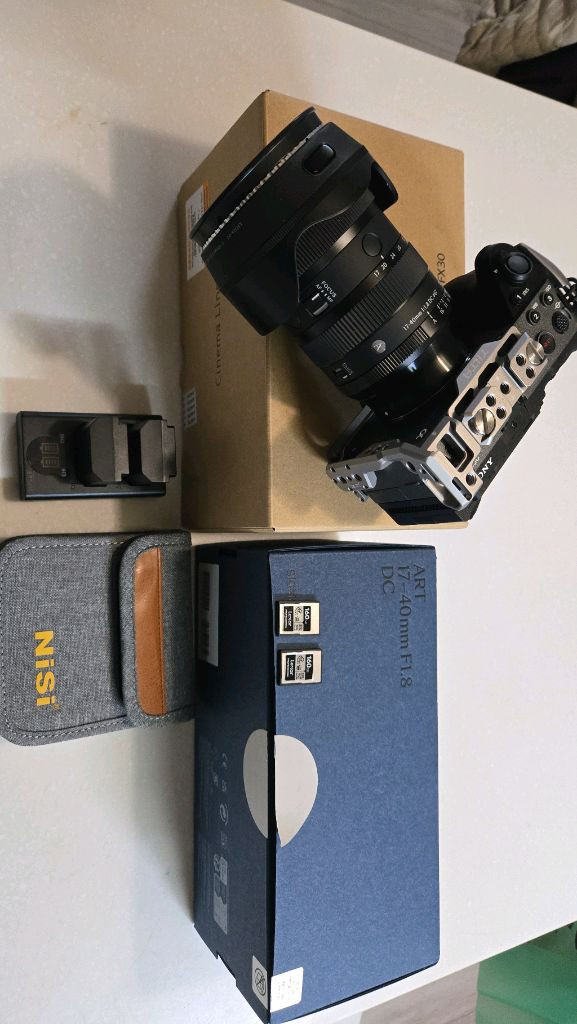 FX30 (25년 1월 생산품) Sigma 17 40 10월 구매 외부 촬영 없슴 Nisi ND 필터 (2~40) CF 카드 160GB 두장 여분 배터리 호환품 2개 추가 충전기 Tilta 케이지 현재 영상 촬용용 크롭 최고 제품들 입니다 사용 계획이 없어져 일괄로만 팝니다