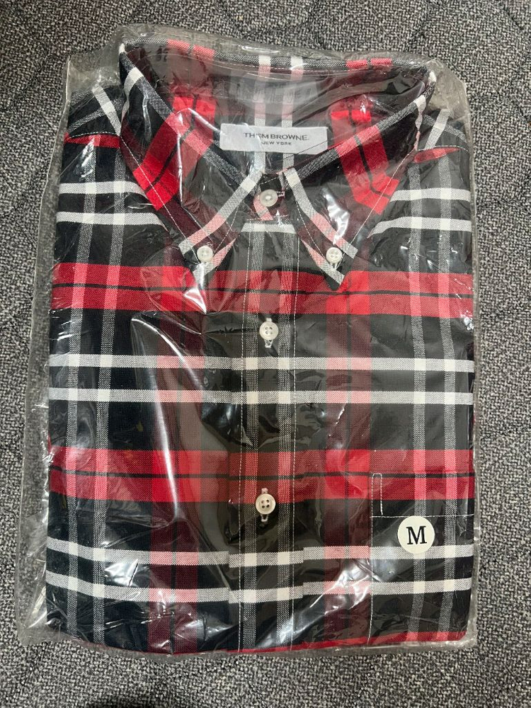 남성 셔츠 새상품 - 색상은 레드, 블랙, 화이트 조합의 체크 패턴입니다 - 사이즈는 M (2)입니다