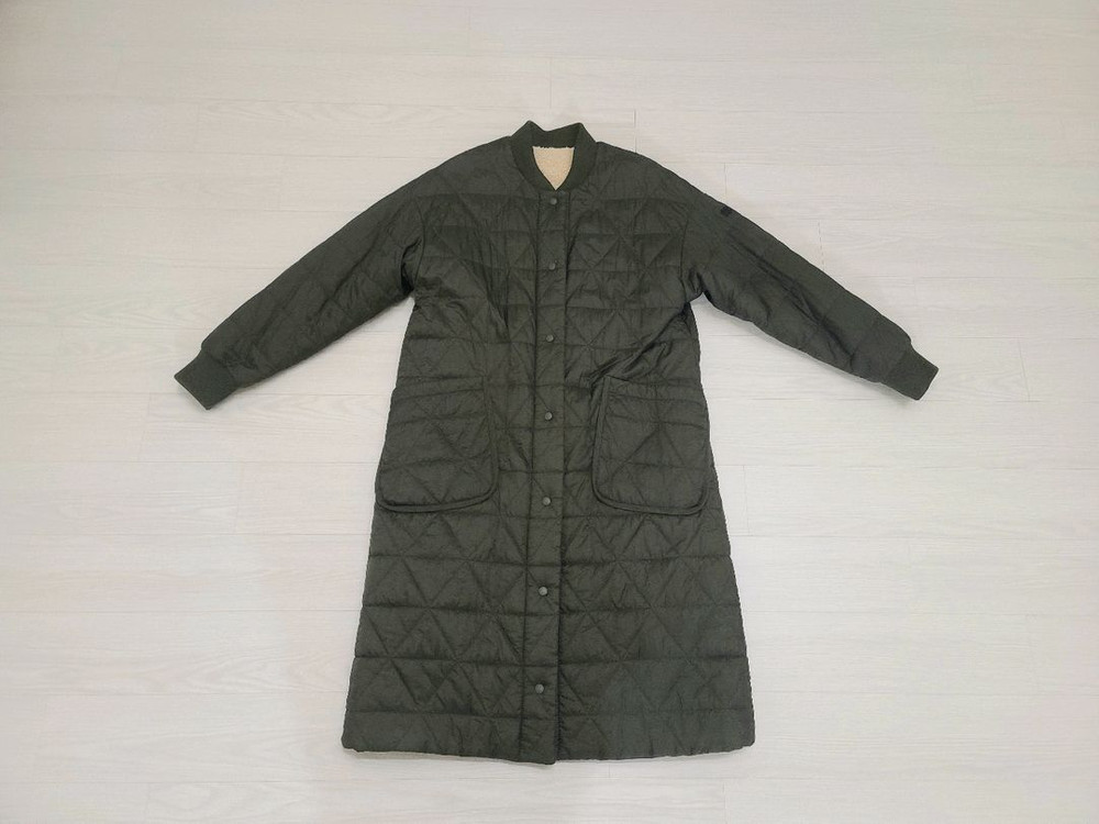 코오롱스포츠 퀼팅 리버시블 후리스 패딩자켓입니다. 양면으로 착용 가능하며, 퀼팅과 후리스 양면입니다. 퀼팅패딩은 카키이며, 후리스는 베이지입니다. 가볍고 따뜻해서 이너를 좀 입으면 한겨울도 가능해요. 눈에 띄는 얼룩이나 오염 없이 상태 깔끔하고 좋아요. 클리닝 후 보관중입니다 사이즈 85로 55반까지 추천드려요