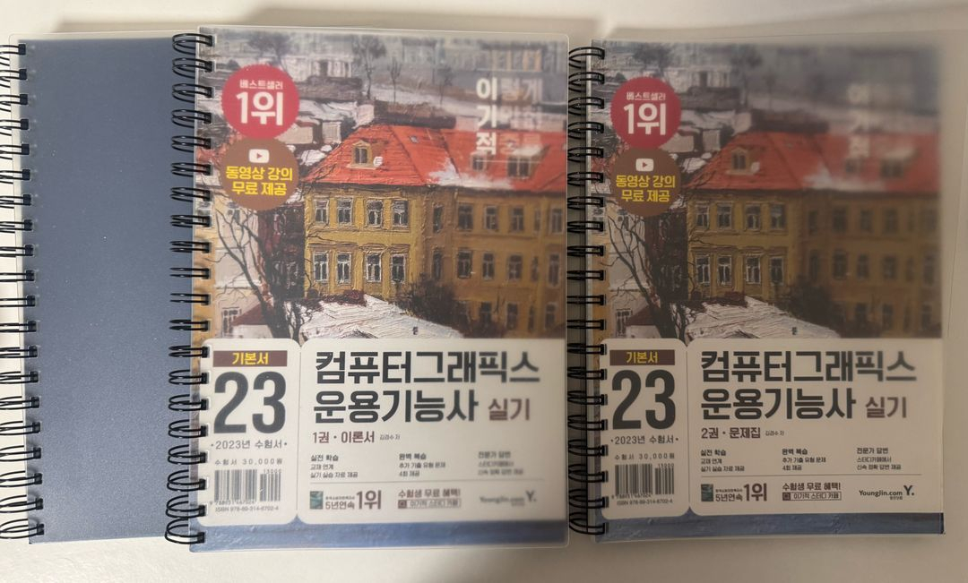 컴퓨터그래픽스기능사 실기 수험소 스프링 제본으로 되어있어 공부하기 편리해요 실기 시험 준비하시는 분께 추천드립니다. 미사용 제품