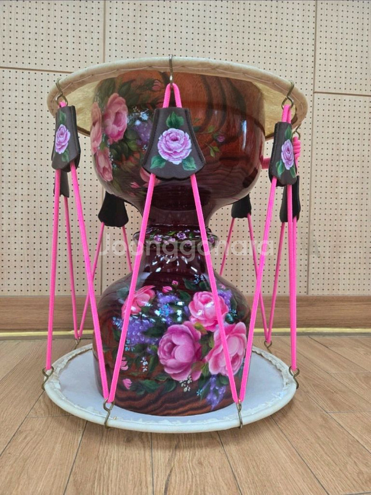 성인용 장구 이구요 직접 그린 작품이라 세상에 하나 뿐인 장구입니다 조리개도 꽃을 하나하나 다 그려넣었어요~ 장구 우레탄코팅 새로하고 궁편가죽 새로 교체 하는데만 10만원 들었어요 공연용으로 사용하시기 이쁘실거예요 다른 구성품 없구요 장구만 있습니다