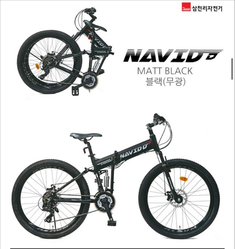삼천리 NAVID D PLUS 26인치 접이식 MTB 자전거 블랙 무광 개봉 안한 새상품 배송비까지 38만원정도 하는 상품입니다 조립 안되어 있으면 가까운 자전거집에가면 1-2만원에 조립,정검 해준다고하네요 부피가커서 원주에서 직거래 가능해요