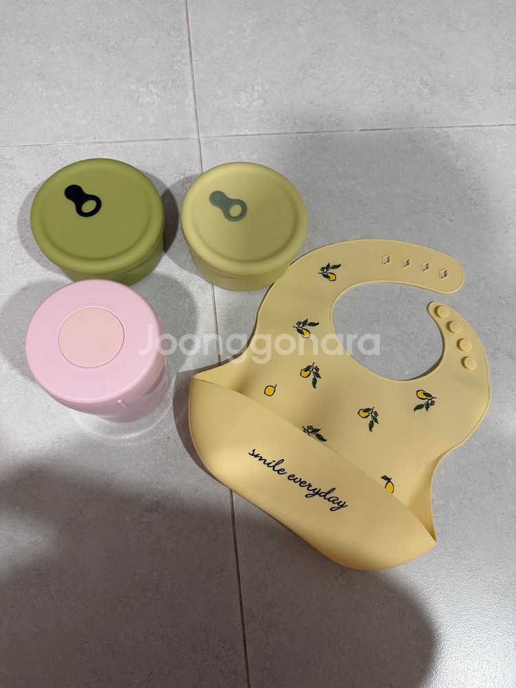 ⭐️네고 문의 답 안해요. ⭐️중고거래 많이 했어요. 믿고 구매해주세요. ✔️턱받이 6,500원 - 1회 사용 https://link.coupang.com/a/dd20kR 실리콘 원형용기 2개 8,000원 - 1회 사용 https://link.coupang.com/a/dd20vh 마카롱 보온 죽통 24,000원 - 5회 사용 https://link.coupang.com/a/dd20Q9 아기 이유식 시기 모두 필요한 것들로 이제 안쓰고 보관만 하게 되어 일괄로 내놓아요. 상태 다 좋지만 죽통은 바닥 쪽 미세 까짐이 있으니 확인해주세요. 일반택배 + 4,500 gs반값 + 1,800 📣 거래 후 환불 불가