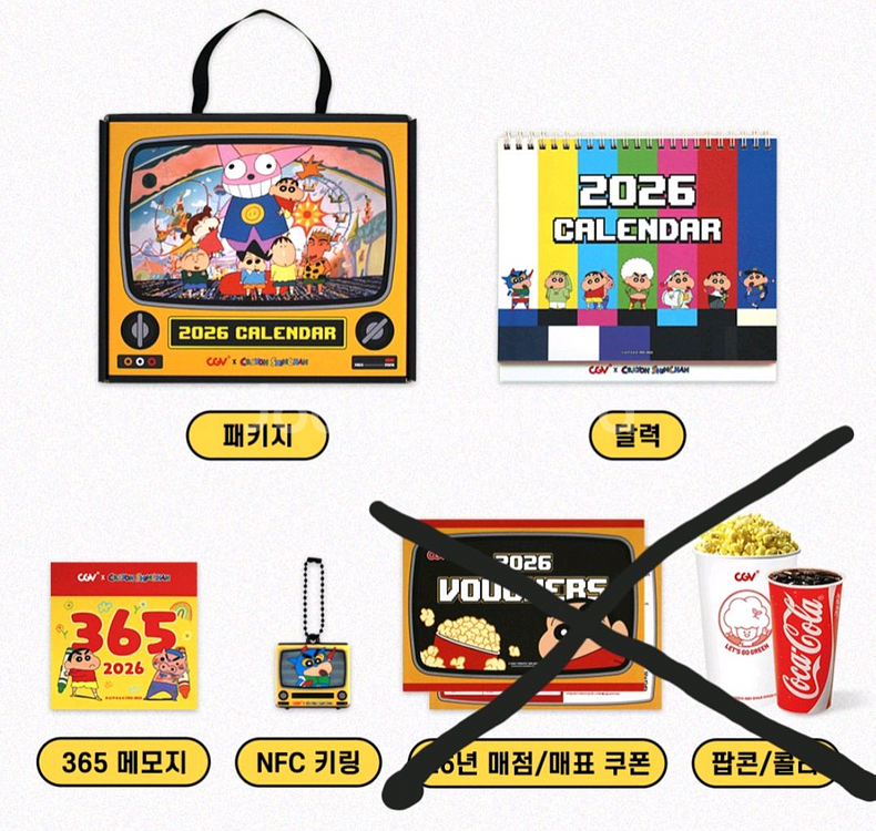 개인정보(거래정보)를 주고받는 행위는 사기에 노출될 수 있으므로 즉시 중고나라로 신고해 주세요CGV 짱구 2026 캘린더 세트입니다 구성품: - 캘린더 - 패키지 - 365 메모지 - NFC 키링 *26년 매점/매표 쿠폰은 제외입니다