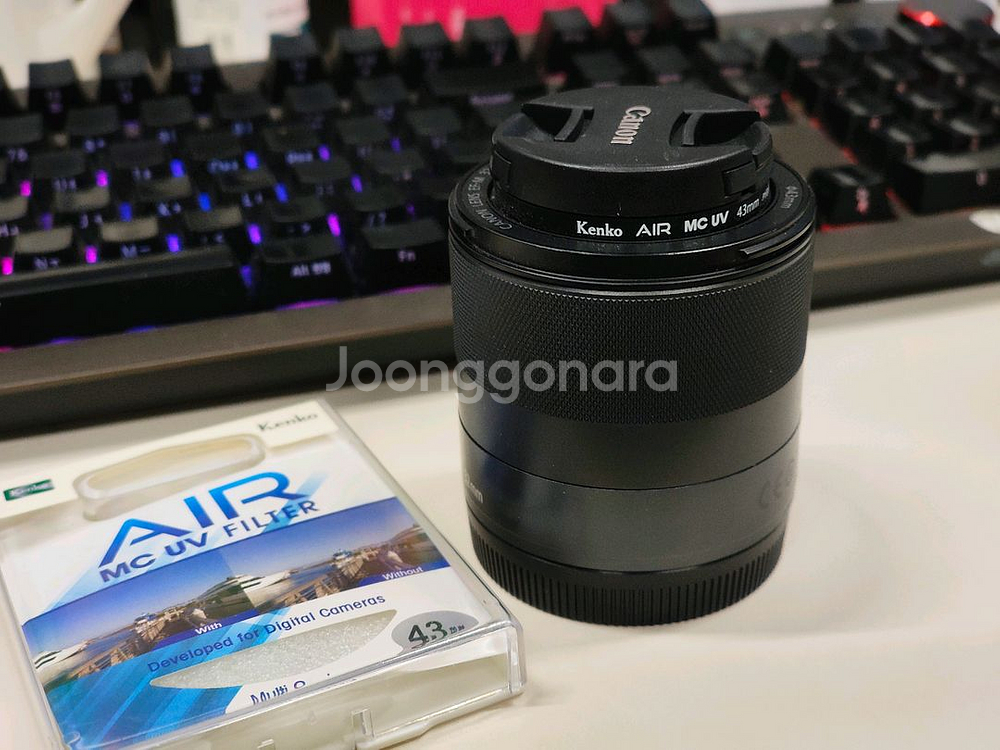 캐논 EFM 32.4 단렌즈입니다. UV 필터도 함께 드려요. 상태 양호하고 깨끗하게 관리했습니다. 택배무료. 풀박스