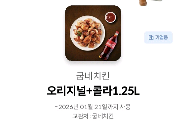 굽네치킨 오리지널 +콜라