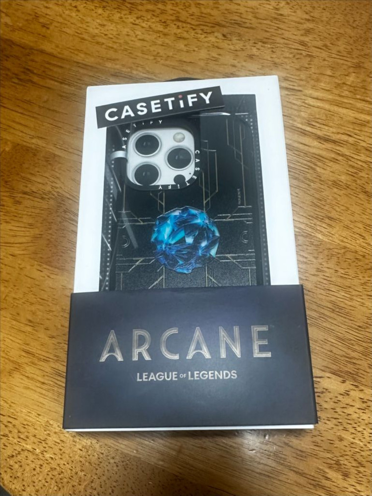 케이스티파이 아케인 리그오브레전드 콜라보 폰케이스입니다. iPhone 14 Pro 미개봉 새상품이며, 리그오브레전드 좋아하시는 분들은 소장가치 충분합니다. 맥세이프와 카메라 링스탠드 탑재되어있는 옵션입니다.