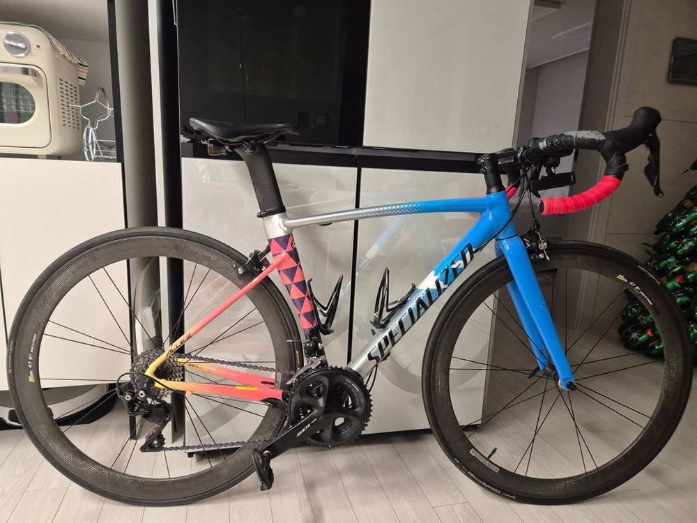 스페셜라이즈드 스프린트 로드바이크입니다. 블루와 오렌지 컬러가 조화로운 디자인으로 상태 양호해 보여요. 고급 로드바이크를 찾으시는 분께 추천드립니다. 안녕하세요. 알레스프린트 레드훅 로드바이크 52사이즈 판매합니다.(판매자 키 170cm, 인심 78.5) 21년도에 기변으로 중고 구매 후 몇번 타고 소장한다고 모셔놨었습니다. 제가 탄 총 마일리지는 1500km 정도도 안되는 걸로 알고 있었습니다. 라이딩 후 사진 찍는다고 기대놨다가 넘어지면서 주변물에 닿아 싯포, 포크, 싯스테이 부분이 살짝 기스났네요.. 크랙 및 먹음은 전혀 없으며, 포크만 따로 도색 맡길까 하다가 그냥 처분하고자 합니다. 바테이프는 갈으셔야 해요. 이젠 매물도 얼마 없고, 출시된지 오래 되어 상태 좋은 매물들이 없을 것 같습니다. 희소성 등의 이유로 가격을 위와 같이 책정하였습니다. 가민 및 거치대, 라이트, 후미등, 부속물 등은 제외입니다.(클릿 페달 드려요) 프레임: 알레스프린트 레드훅 52사이즈 휠셋: 코리마 s+47mm 튜블러 구동계: 풀 105 R7000 스템: 알루스템 핸들바: 습샬 호버바 안장: 습샬 파워안장 직거래 지역은 강원 철원입니다. 기름값 정도는 네고 해드릴 수 있습니다. 010 이칠구팔 일공일3 연락주세요~^^
