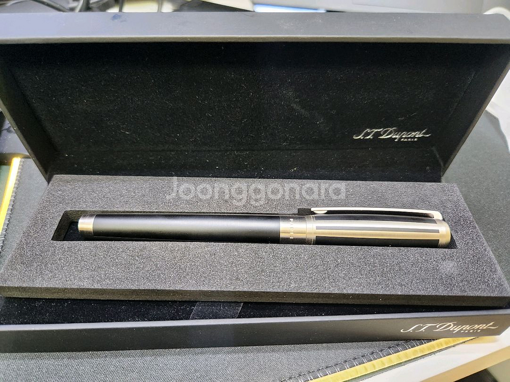2017년 구매한 듀퐁 라인 D 만년필입니다 국내 SJ DUKO 정식스탬핑입니다 닙은 14K이며 배럴과 캡은 매트한 차이니즈 라커와 팔라듐 도금입니다 전제적으로 상태 좋으며 가끔씩 시필 후 늘 파우치에 보관한 제품이라 눈에 띄는 스크래치는 없습니다 박스풀입니다