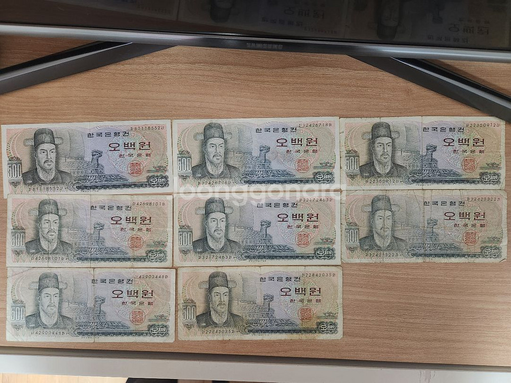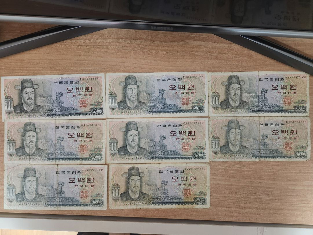 한국은행에서 발행된 500원 지폐 8장이에요. 오백원 지폐이며 컬렉션용이나 수집용으로 좋을 것 같아요. 상태는 사진 참고 바랍니다. 장당 2만원, 8장 일괄 15만원입니다.