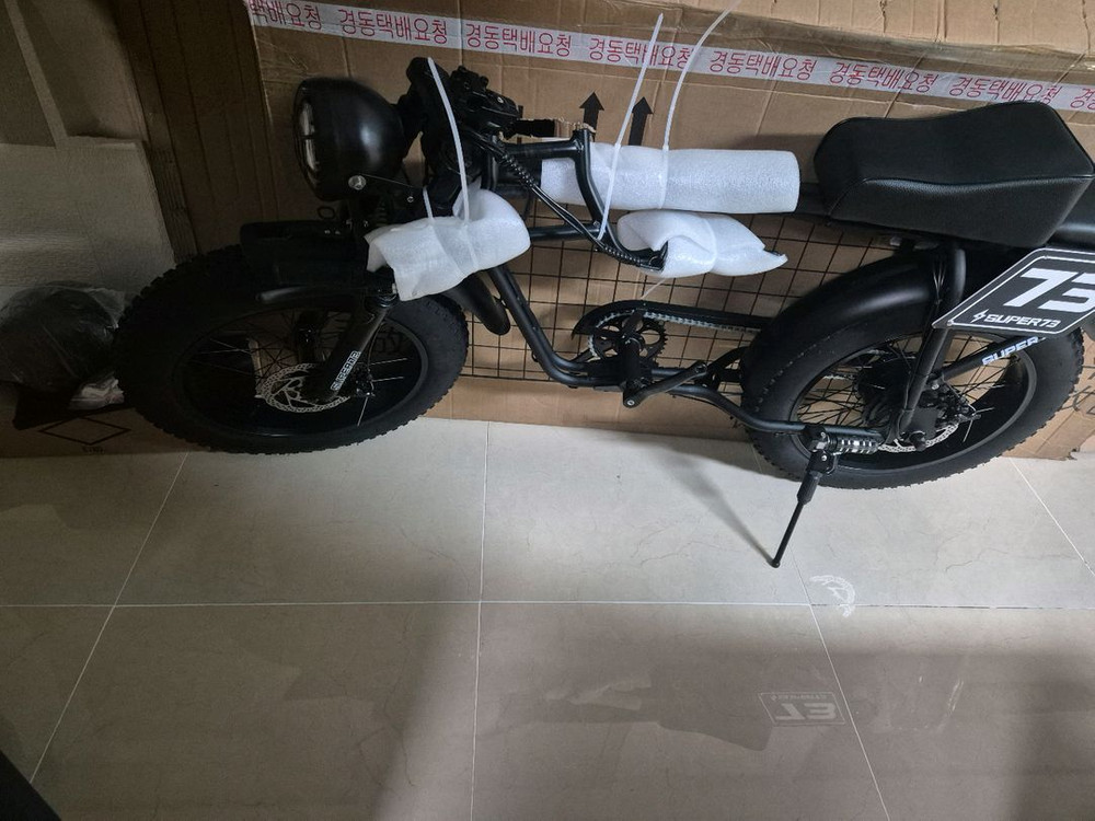원가 200만원에 관세에 배달비 12만원 총 원가는 212만원입니다 -슈퍼73 카피모델이지만 - 미개봉 상품이고 아직 포장도 안뜯었습니다. - 배터리,헬멧,충전기등 다른 부품들 전부 같이 판매합니다 - 경품 1등 당첨 상품으로 받은것이고 면허도 없고 탈 생각도 없어서 싸게 판매합니다. - 앞뒤에 서스펜션 달려있고 후미등도 달려있습니다 -400W, 20Ah, 48V ,21A