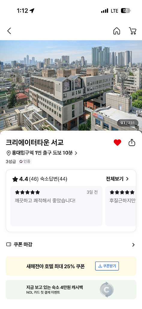 개인정보(거래정보)를 주고받는 행위는 사기에 노출될 수 있으므로 즉시 중고나라로 신고해 주세요서교 호텔 12월 24일부터 25일까지 사용 가능한 숙박권이에요. 깔끔하고 예쁜 인테리어의 방으로 예약 가능합니다! 크리에이터타운 서교 수페리어 트윈이구용 두명같이 잘수 있어용 그리고 애견동반 가능합니더!!!