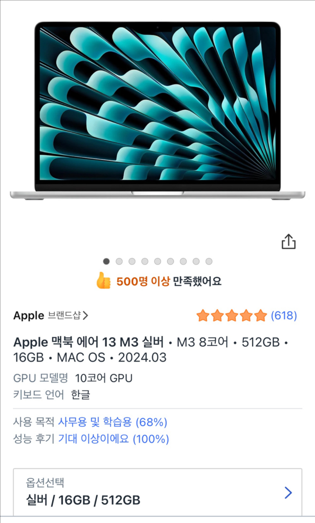 개인정보(거래정보)를 주고받는 행위는 사기에 노출될 수 있으므로 즉시 중고나라로 신고해 주세요Apple 맥북 에어 13 M3 실버 • M3 8코어 • 512GB • 16GB • MAC OS • 2024.03 맥북 사용이 어려워서 사용감 거의 없습니다 플라스틱 케이스도 함께 드립니다! 구입시기 24년 11월 14일