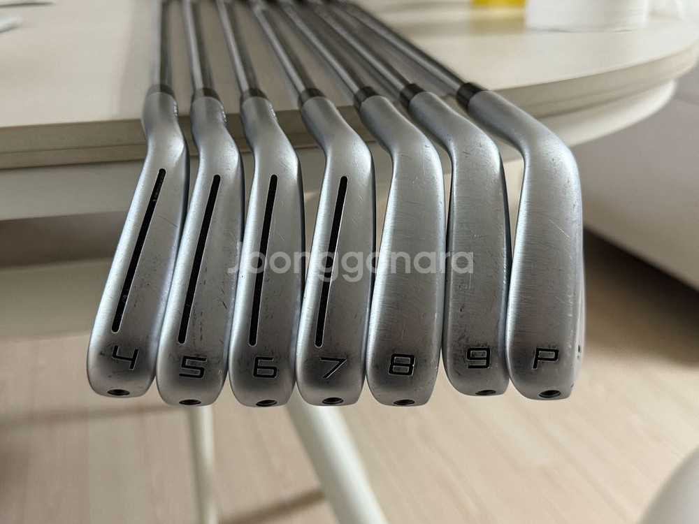 테일러메이드 P790 아이언 세트 팝니다 4번부터 P까지 총 7개 아이언으로 구성되어 있습니다 샤프트는 Dynamic Gold 105 입니다 FORGED 각인이 새겨져 있습니다 - 뛰어난 타구감과 관용성을 제공합니다 - 정교한 샷 컨트롤이 가능합니다 약간의 사용감은 있지만 전체적으로 양호한 상태입니다