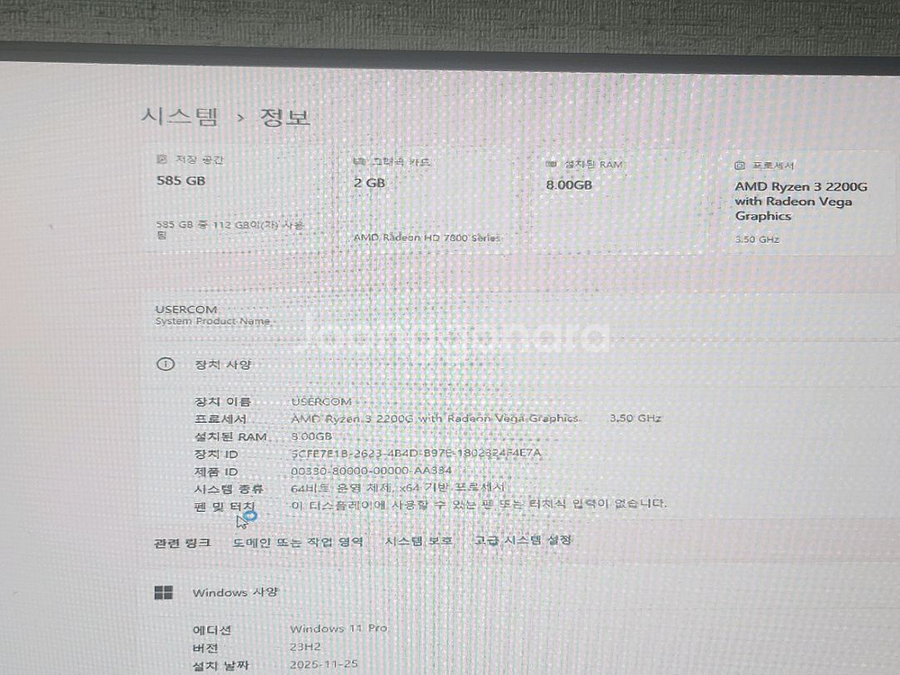 AMD Ryzen 3 2200G 프로세서와 8GB RAM이 탑재된 게이밍 노트북입니다. 시스템 정보 화면에서 확인할 수 있듯이 정상 작동하는 상태예요. 게임이나 작업용으로 사용하기 좋은 성능의 노트북입니다. 그래픽은 보시다시피 AMD Radeon HD7800Serise 이지만 GTX1030으로변경하여 같이 드리구요 중고상품이라 구매시 환불 X 급처입니다 10만원