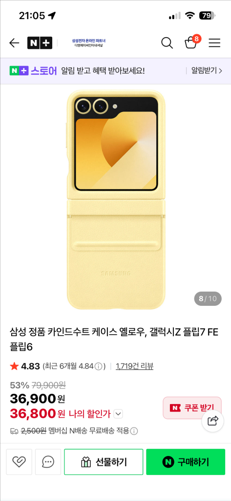 개인정보(거래정보)를 주고받는 행위는 사기에 노출될 수 있으므로 즉시 중고나라로 신고해 주세요기종 오주문으로 포장만 뜯은 새상품입니다 색상 : 옐로우 갤럭시 Z 플립6 갤럭시Z 플립7 FE 두 모델 호환가능해요!
