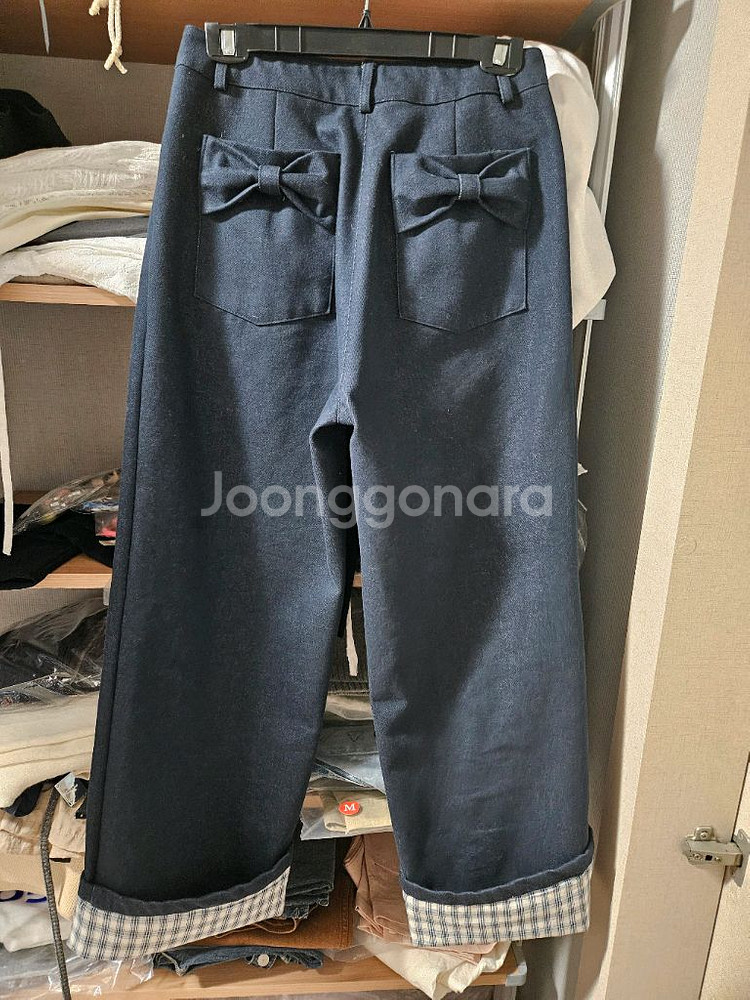 리본 포인트 롤업 팬츠(새상품)