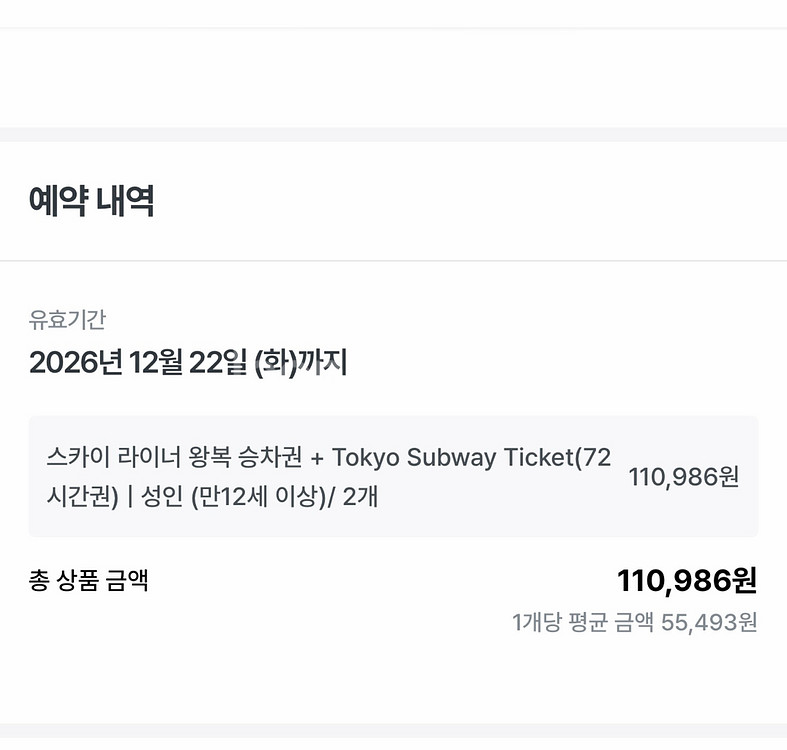 개인정보(거래정보)를 주고받는 행위는 사기에 노출될 수 있으므로 즉시 중고나라로 신고해 주세요2026년 12월까지 사용 가능한 도쿄 지하철과 스카이라인 왕복권이에요. 72시간 이내에 사용 가능하고 일본 여행 계획 있으신 분께 추천해요!