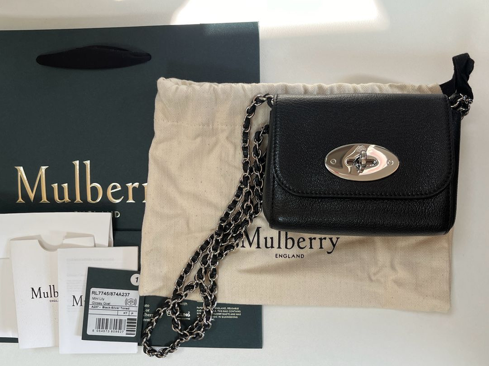 멀버리 릴리백 미니 사이즈 블랙 색상입니다 금장 체인이 아니여서 클래식하고 유행 타지 않아 이뻐요 비슷한 디자인이 여러 개 있어서 판매합니다 멀버리 공식 사이트에서 23/09월경에 구매했습니다 미니 사이즈이고 안에 카드지갑이 내장되어 있어요 카드랑 화장품 담아 사용하시기 좋아요 더스트백, 쇼핑백, 택 모두 포함되어 있습니다 상태는 기스 빼고는 사용을 거의 하지 않아 좋은 편이에요 사이즈 가로 14 세로 11 폭 6.5 입니다