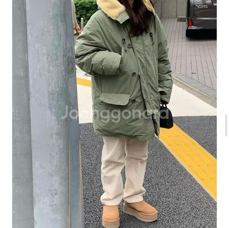 카키색 브런치 야상 구스다운 패딩입니다. 여성 프리사이즈이며, 넉넉한 핏으로 편하게 입으실 수 있습니다. 야상 디자인이라 캐주얼하게 코디하기 좋습니다. 어렵게 구했어요. 모두가 원하는 야상패딩 디자인. 보관상 팔부분 미세한 색바램 있어요. 옷 색상자체와 티는 거의 안나요. 여성 프리가 s 모든 품목엔 상세 사이즈 있어요. 확인하시고 결제하세요. 사이즈 조언 어려워요.