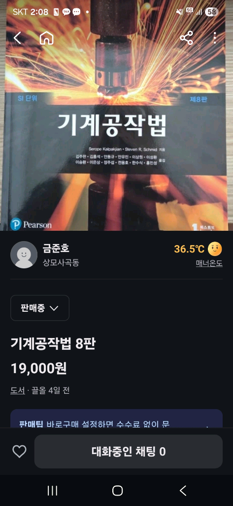 당근에 올렸었던 기계공작법 8판 교재입니다. 잔기스 조금 있습니다