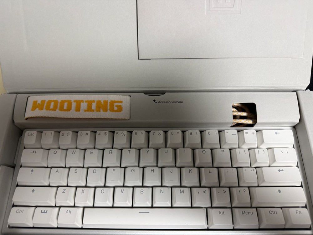 우팅 60he v2 화이트 알루미늄 하우징입니다 사전예약으로 구매했습니다 사용한지 일주일도 안되어 새상태급이고 사전예약 혜택인 스티커팩이랑 키 압력이 다른 여분 스위치도 같이 넣어 드리겠습니다