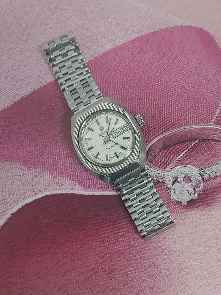 *케이스크기:23.5m/m(100원 동전크기) *오토메틱(자동) *데이데이트 *운모유리 *swiss made *시계줄:17.5센치정도(버클부분이 늘어나는 신축성있는 고급시계줄임) swiss RADO 빈티지 오토제품으로 미세잔기스등 있으나 전체적인상태 깔끔합니다 모든점검 완료하여 시간도 정확하며 사진상 선물용케이스에 넣어서 드립니다.