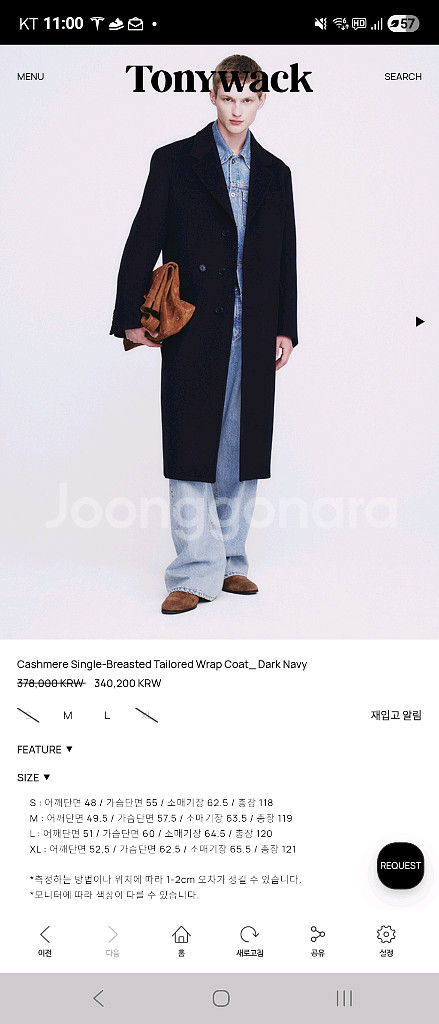 Cashmere Single-Breasted Tailored Wrap Coat 현재 37.8만에 판매중 블랙은 올 품절제품입니다. 연휴기간동안 에눌가능하니 연락주세요 토니 일반 싱글 테일러드코트 아닙니다. 캐시미어 싱글 랩 코트입니다 굉장히 부드럽고 핏이 절묘합니다. 살이좀쪄서 사이즈업을 위해 판매합니다. 100입으시는분 저스트입니다. S사이즈입니다 상태는 보관상 먼지만 묻었으며 극상컨디션. S: 어깨단면 48 / 가슴단면 55 / 소매기장 62.5 / 총장 118 M: 어깨단면 49.5 / 가슴단면 57.5 / 소매기장 63.5 / 총장 119 L : 어깨단면 51 / 가슴단면 60 / 소매기장 64.5 / 총장 120 XL: 어깨단면 52.5 / 가슴단면 62.5 / 소매기장 65.5 / 총장 121