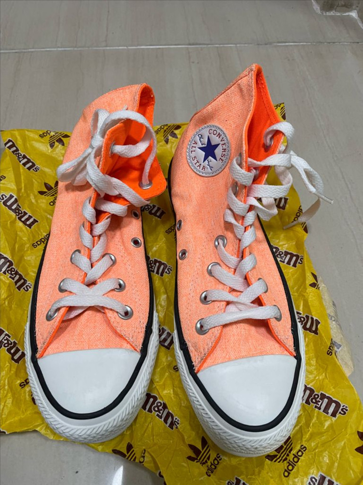 컨버스 척테일러 오렌지(여성) 사이즈: 230(유럽 36.5) 240 신으시는 분께 맞습니다. 특이사항: 새상품이나 구입 후 신발장에 넣어두다보니 사진처럼 흙? 먼지? 오염이 있습니다. 사진 꼭 확인해주세요. 박스 없습니다. 일반택배 3,500₩ CU끼리 택배 2,000₩