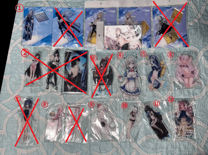 ### 무리한 에눌, 교환 및 환불 XXX ### ✅ 모든 상품 "미개봉" & 택미포 가격입니다. ✅ 상품 및 배송비관련 에눌문의 ❌❌❌ ✅ 교환 및 환불은 어려운점 참고 부탁드립니다. ❗예약순 ❌, 입금순 ⭕ ❗ 사진 속 "번호" 참고하셔서 가격 확인 부탁드립니다 → 그 밖에 궁금하신 부분은 편히 문의주세요!!! ㅎㅎ 1. 애니플러스 아크릴 스탠드[공식] : 개당 1.8 [3개이상 구매시 개당 1.5씩] ✅ 미야코 1개 ✅ 사오리 : 판매완료 ✅ 히후미 2개 ✅ 아즈사 : 판매완료 ✅ 히후미 홀로그램 엽서 1개 : 0.8[미개봉] 2. 리오 아크릴 스탠드 : 판매완료 3. 알바생 하스미 : 판매완료 4. 시로코 메이드 : 2.4 5. 아리스 수영복 : 2.2 6. 아즈사 수영복 : 2.2 7. 유우카 수영복 : 2.8 [일본 코미케 아크릴] 8. 치파오 하나코 : 개당 2.3 [수량 1개] 9. 웨딩드레스 무츠키 : 2.2 10. 운동복 이오리 : 2.2 11. 수영복 우이 : 2.3 12. 파자마 아루 : 2.0 -------------- 2번 사진 참고 ---------------------- 1. 노아 아크릴 스탠드 ✅ 교복 노아 : 2.3 ✅ 일상복 노아 : 2.2 ✅ 집사 노아 : 2.3 2. 집사 토키 : 판매완료 3. 아스나 아크릴 스탠드 : 판매완료 4. 미카 아크릴 스탠드 ✅ 온천 미카 : 판매완료 ✅ 파자마 미카 : 판매완료 ✅ 유카타 미카 : 2.3 ✅ 수영복 미카 : 판매완료 ✅ 수영복 미카2 : 판매완료 ✅ 아이돌 미카 : 판매완료 5. 미카 아크릴 스탠드 - 바캉스 미카 : 판매완료 - 학생 미카 : 판매완료 - 댄서 미카 : 2.2 6. 수영복 호시노 : 판매완료 7. 애니메이트 아카리 아크릴 스탠드 + 체인키링 set[공식] : 3.5 8. 모모프랜즈 여권케이스 : 2.4 📦 배송정보 ✅ 일반배송 : cu편의점택배 + 0.35 ✅ 반값배송 : cu편의점끼택 +0.2 [단, gs의 경우 집근처에 없어 접수가 어렵습니다 ㅠㅠ] ✅ 우체국 배송 : 0.4 [단, 오후 3시이후는 다음날 접수가능]