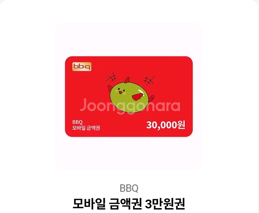 BBQ에서 사용 가능한 3만원 모바일 금액권입니다. 연락주세요!