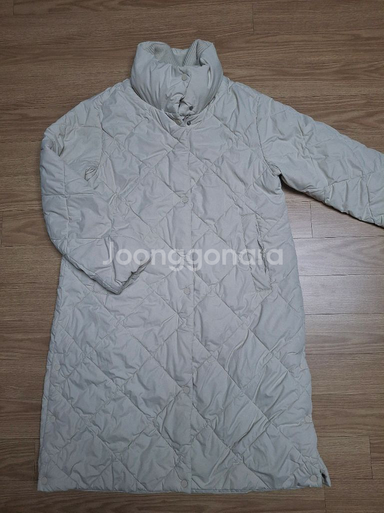 아이보리색 퀼팅 롱패딩 점퍼입니다 사이즈는 95이고, 폴리에스터 100% 재질입니다 가벼운 착용감으로 편안하게 입을 수 있고, 퀼팅 디자인으로 보온성도 좋아요 상태좋음. 2번정도 착용