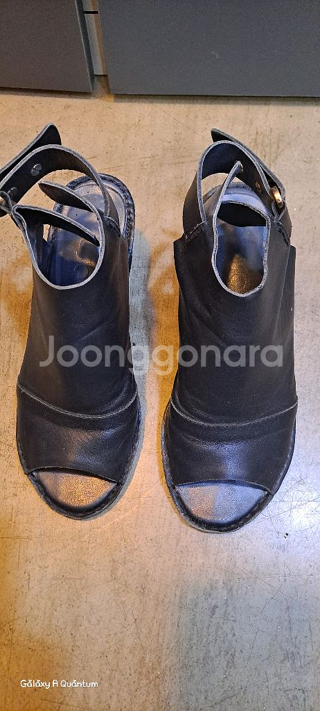 대전 롯데백화점 슈콤마보니 구입 블랙 오픈토 힐 앵클부츠입니다 235 5cm굽 많이 신지는 않았는데 전반적으로 사용감이 있네요. 바깥쪽은 상태 양호안데 안쪽은 화장품 묻은것 마냥 좀 지저분해 보이기는 하는데 데일리로 착용하기 좋은 스타일이에요. 구입후에는 교환 환불 어려워요.