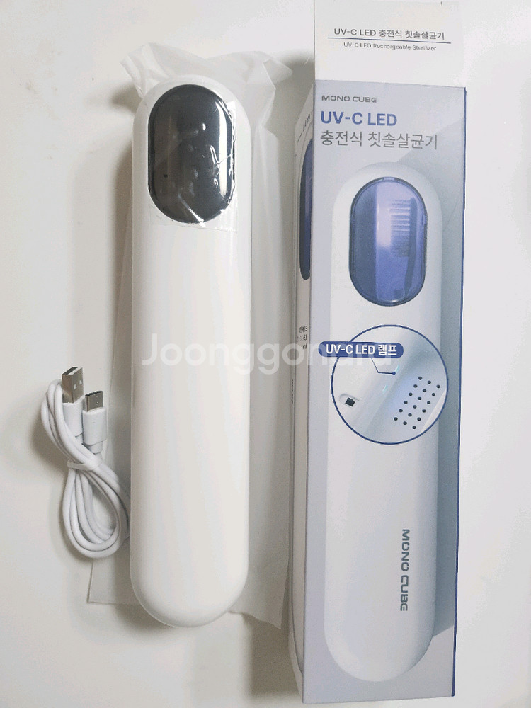 새상품.미사용 모노큐브 제품 충전식 칫솔살균기 들어 있는 C타입으로 충전해서 사용해요 설명은 사진에 있어요 *1개 무료배송 .당일발송 환불불가