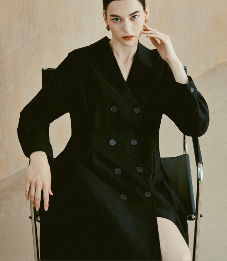 XIX 여성 롱코트 테일러드 더블 트렌치형 원피스 블랙