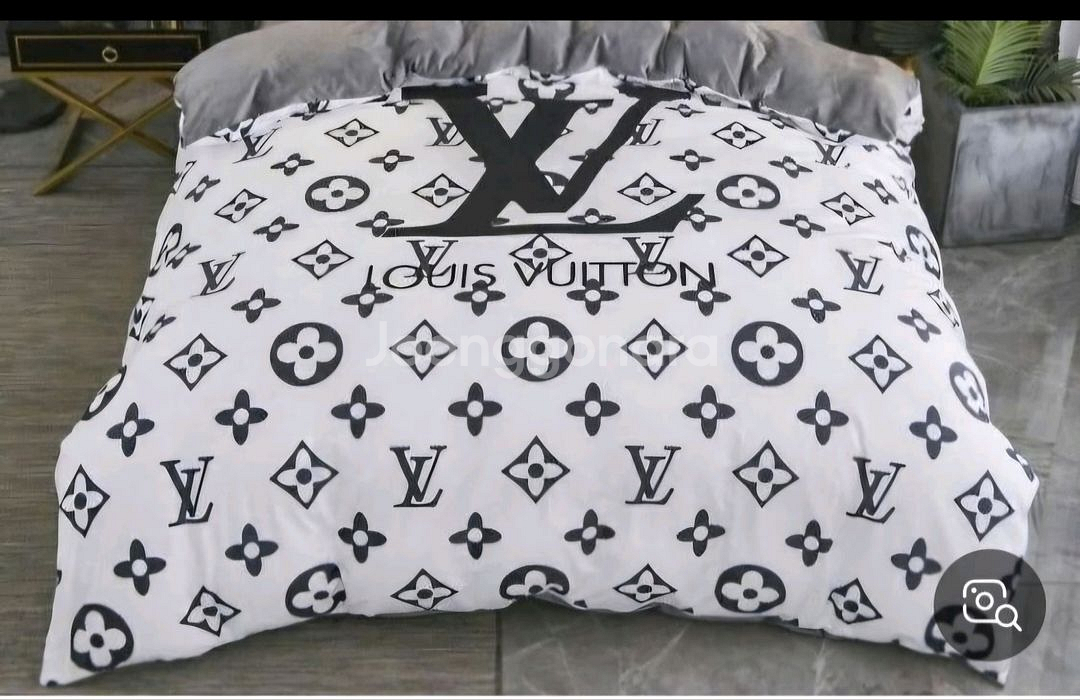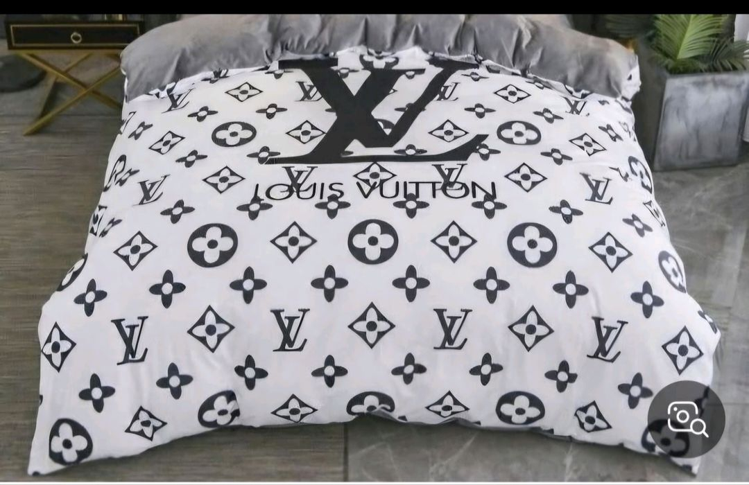 고급스러운 침구세트예요. 화이트 바탕에 블랙 로고가 세련되고 우아한 느낌을 줍니다. 빨리 구매하신 분에게 사은품드릴게요