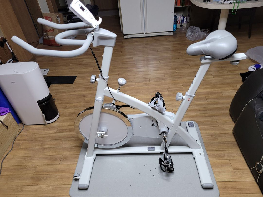 개인정보(거래정보)를 주고받는 행위는 사기에 노출될 수 있으므로 즉시 중고나라로 신고해 주세요멜킨 스핀바이크 실내자전거 실내사이클 클럽형 18kg 2025.11.18 구매 5번 사용 추가구매한 매트 포함 배달불가