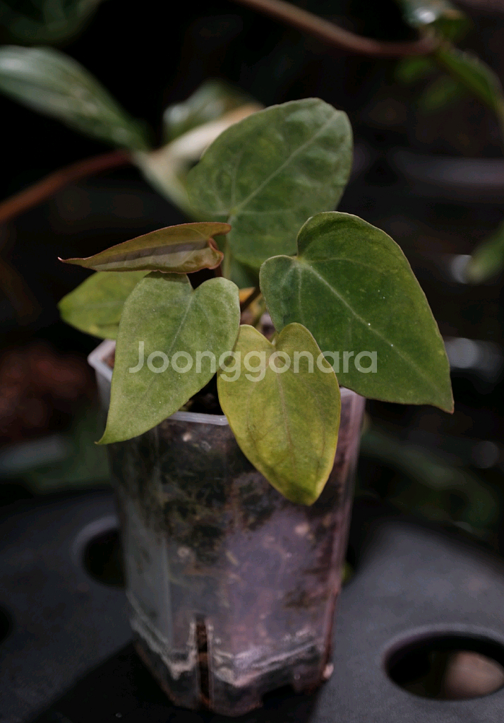 안스리움 크리스탈건3 x 파필 하이브리드입니다. 뿌리 건강합니다.