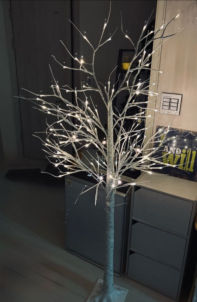 LED 자작나무 트리 150cm 은은한 조명 효과로 집안 분위기를 따뜻하게 만들어 주고 인테리어 소품으로 활용하기 좋습니다. 조명이 안들어오는 부분이 있네요.. 뒤로 숨겨(?)놓으면 별로 티 안나요. 목화솜 드립니다. 시간 맞추기 힘들어서 신방화역 8번출구쪽 문고리 원합니다. 입금해주시면 상세주소 알려드려요.