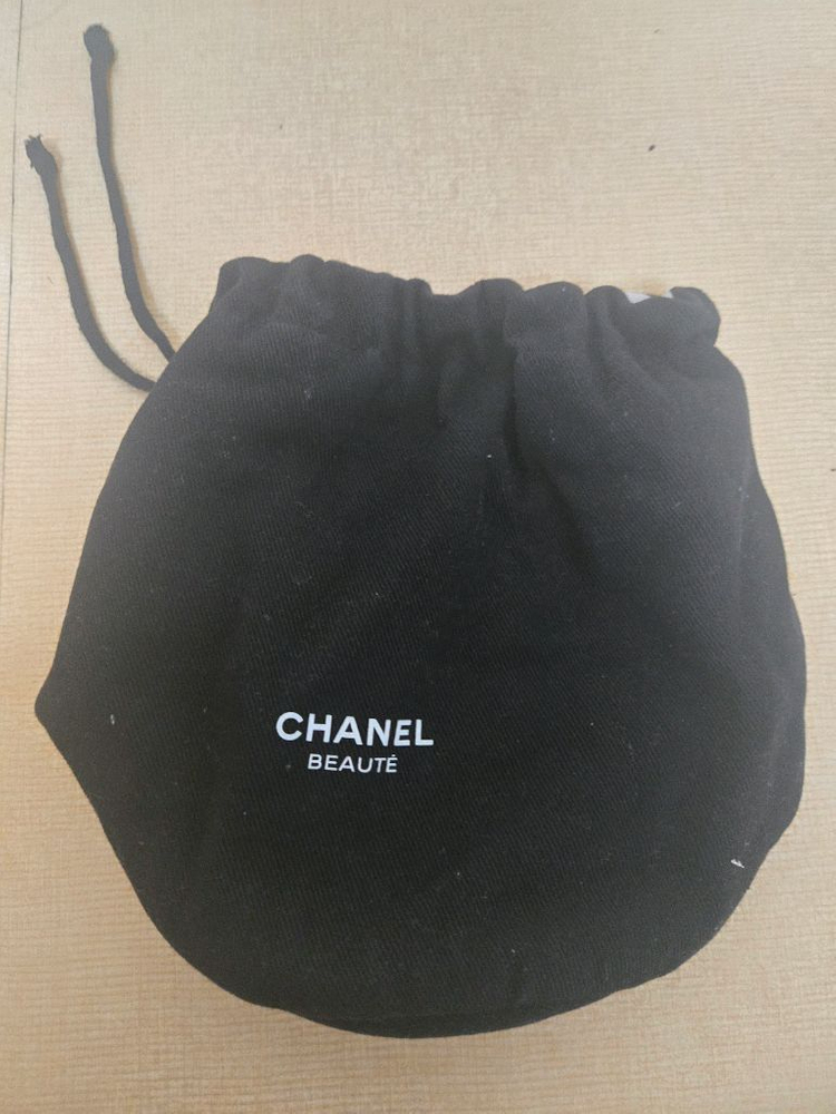샤넬 뷰티 정품 파우치예요. 블랙 컬러에 샤넬 로고가 새겨져 있고, 내부는 깔끔한 상태입니다. 화장품이나 소품 보관용으로 활용하기 좋아요. 안에 볼펜자국있어요
