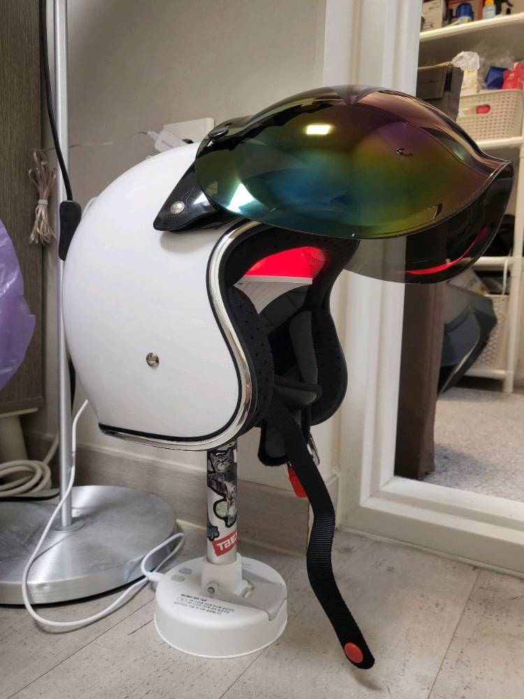 빌트웰 보난자 화이트 클래식 오픈페이스 헬멧 판매합니다 텐덤용으로 사용해서 사용감 적습니다 헬멧은 사진에 보이는 그대로 깨끗한데 쉴드는 시야에 문제없는 스크래치 있습니다 바람 막기용으로 달아둔 거라 민감하신 분들은 탈착하시면 됩니다 파우치, 쉴드 포함 서울(원효로3가), 경기(고양시 도내동) 직거래 가능하고 그 외 지역 택배 거래 가능합니다(배송비 별도)