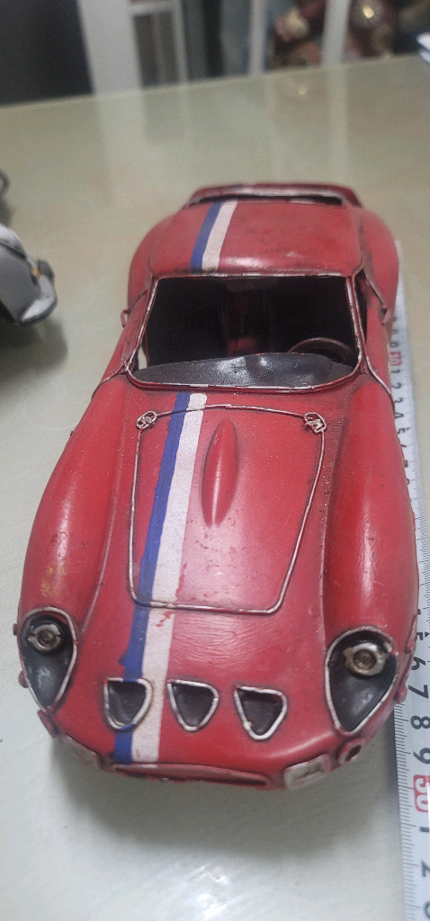 희귀 빈티지 핸드메이드 양철 자동차 - 제임스 딘 포르쉐 등 6종 가구배치 목적으로 오랜기간 취미로한 옛물건 장식장에 꽉찬거 이 물건은 너무 어렵게 구한거라 소장할까 망설이다가 올립니다. 장식을 다 거래한후 이케아 유리장식장 열댓개를 날릴계획으로 조금씩 올려 봅니다. 수집용으로 소장하던 귀한 빈티지 틴 토이(Tin Toy)들입니다. 너무 너무 디테일한 유리창 있고 빽밀러 거울있는 레플리카는 질리는데 이거는 정말 정말 볼수록 애정이 갑니다. 일반적인 저가형 철판 장난감이 아니라, 철판을 직접 두드리고 용접해서 만든 가꾸있을 수록 돈이 되는 100% 핸드메이드 제품입니다. 주요 모델 (총 6대) 은색 포르쉐 356 (3대): 배우 제임스 딘이 탔던 1955년식 전설적인 스포츠카 모델입니다. 빨간색 페라리 250 GTO: 클래식카 중 가장 가치 있는 모델을 재현한 스포츠카입니다. 클래식 F1 레이싱카: 내부 계기판 디테일까지 살아있는 빈티지 레이싱카입니다. 제품 특징 기계로 찍어낸 것이 아니라 사람이 직접 도색하고 용접한 수작업 모형이라 손맛과 감성이 살아있습니다. 일부러 낸 빈티지 효과(웨더링)가 아주 고급스러워 카페 인테리어, 서재 장식용으로 최고입니다. 부속품 누락이나 큰 찍힘 없이 보관 상태 아주 좋습니다. 타 제품보다 큼지막하고 맛스럽습니다. 조금만 사이즈가 커도 금액이 확 올라가는게 양철 자동차이고 오토바이나 트럭 승용차 보다 스포츠카가 높은 가격입니다. 거래 정보 개당 판매가: 70000 워낙 디테일이 좋아서 실물 보시면 더 만족하실 겁니다. 1. 주요 모델 분석 은색 오픈카 (1955년식): 번호판에 '1955'라고 적힌 이 차는 전설적인 스포츠카 **'포르쉐 356 스피드스터'**입니다. 제임스 딘이 생전에 아주 아꼈던 차로 유명하죠. 은색이라 더 가치가 있어 보입니다. 빨간색 스포츠카 (줄무늬): 앞부분에 삼색 줄무늬가 있는 차는 '페라리 250 GTO' 스타일입니다. 클래식카 경매에서 세계에서 가장 비싸게 팔리는 차 중 하나를 모델로 했네요. 빨간색 긴 레이싱카: 이건 아주 옛날 F1 그랑프리 레이싱카 모델입니다. 운전석 내부 계기판까지 표현된 걸 보니 상당히 신경 써서 만든 제품입니다. 3. 예상 판매 가격 70000(하나당) 이 정도 퀄리티에 크기(약 25cm이상)라면 수집가들 사이에서 꽤 대접받습니다. (포르쉐나 페라리 모델이 특히 인기가 많습니다.) 공장에서 찍어낸 저가가 아니라 수작업으로 도색된 핸드메이드 제품이며, 부속품 누락 없는 풀구성입니다. 카페 인테리어용이나 수집용으로 최고입니다." 카페 사장님들이나 인테리어 소품 찾는 분들은 쳇 주세요