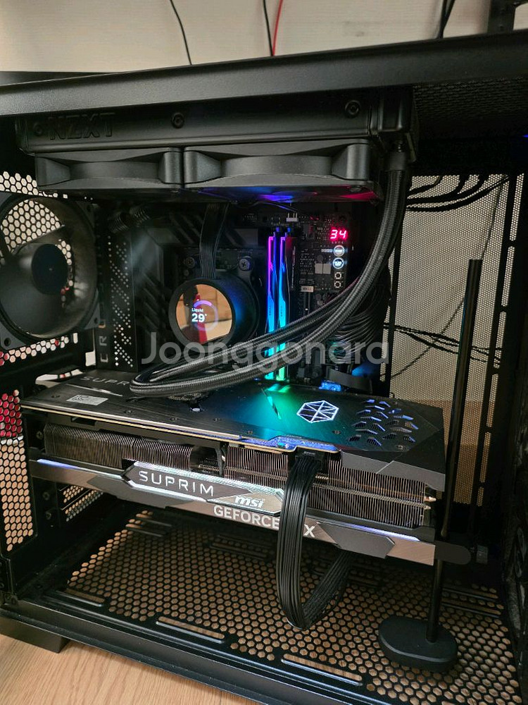 구매날짜 : 오버시스템 2023년 8월31일 구매 궁금하신점 채팅으로 연락주세요 직거래지역: 경기 시흥시 목감중앙로62 [메인보드] : ASUS ROG CROSSHAIR X670E Gene [CPU] : AMD 라이젠7-5세대 7800X3D [메모리] : 32기가 G.SKILL DDR5-6000 CL36 [그래픽카드] : 지포스 RTX 4080 슈프림 [CPU쿨러] : NZXT KRAKEN 240 [SSD] : SK하이닉스 Platinum P41 M.2 NVMe 1TB [파워] : Antec NeoECO 1000W 80PLUS GOLD [케이스]: BRAVOTEC 트레저 X10 AERO [OS] : Microsoft Windows 11 Home