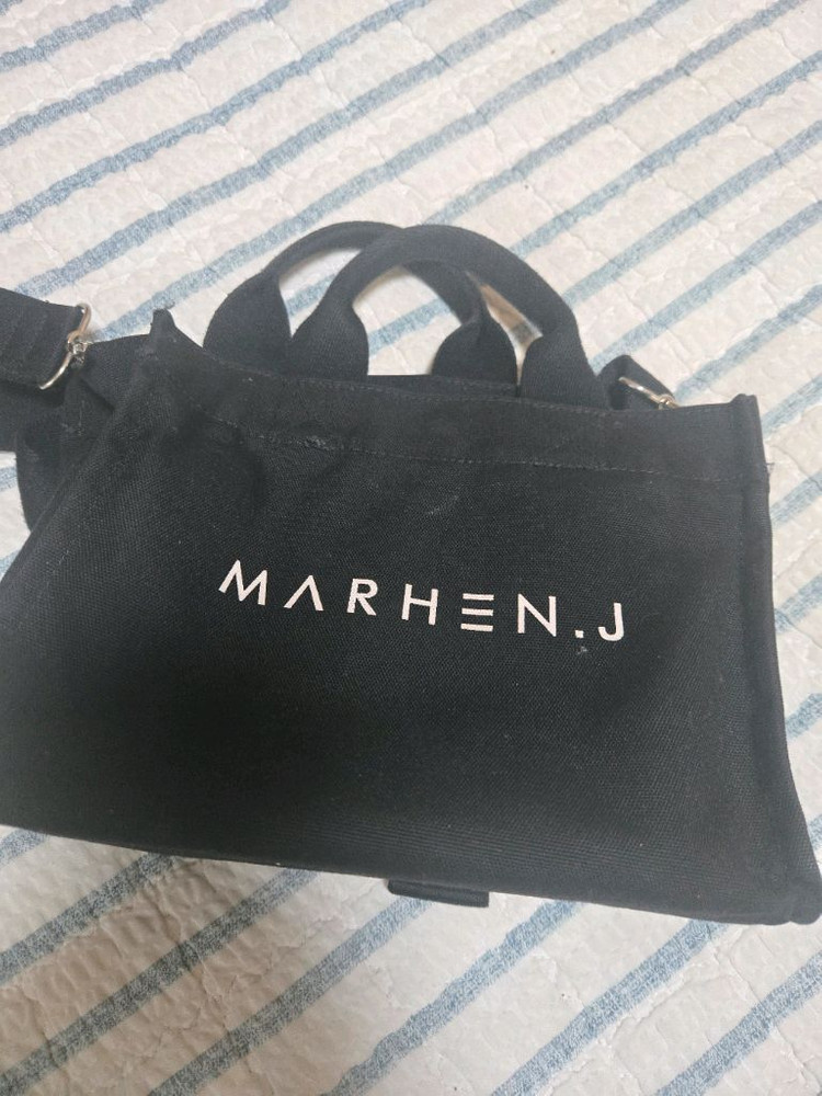 마리헨지 브랜드의 블랙 컬러 토트백이에요. 깔끔한 디자인으로 데일리용으로 활용하기 좋을 것 같아요. 상태는 양호해 보입니다.
