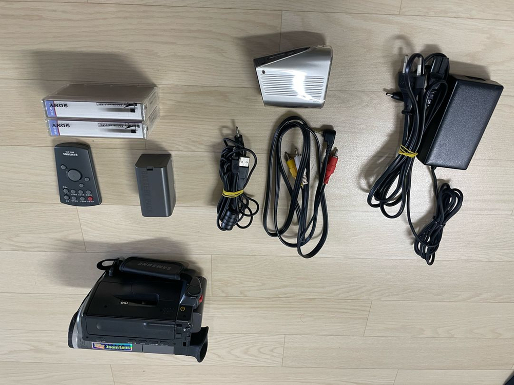 삼성 VM-A3400T 액정8mm캠코더입니다. 리모컨, 충전기, 각종 케이블, 테이프 2개의 구성품이 모두 포함되어 있어요. 사용감 좀 있고 사용을 안 한 지 좀 되서 배터리는 두개 모두 방전이 된것으로 보입니다 충전케이블을 꽂아야만 정상작동 합니다 녹화는 방법을 몰라 확인을 못 했습니다 (녹화기능이 안 될 가능성이 있어 이부분 생각 잘해 보시고 구매해주시면 감사하겠습니다) 배터리는 별도로 구매하여 사용해야 할듯합니다 방전된 배터리도 혹시나 필요하시면 같이 보내드릴게요 필요없으시면 빼고 보내드리겠습니다 케이스도 같이 보내드립니다