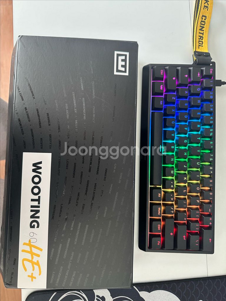 우팅60HE+ 레이븐 그린 컬러 기계식 키보드입니다. 박스와 함께 판매하며 상태 양호해요. RGB 백라이트 지원하는 고성능 키보드로 게이밍이나 타이핑용으로 좋습니다.